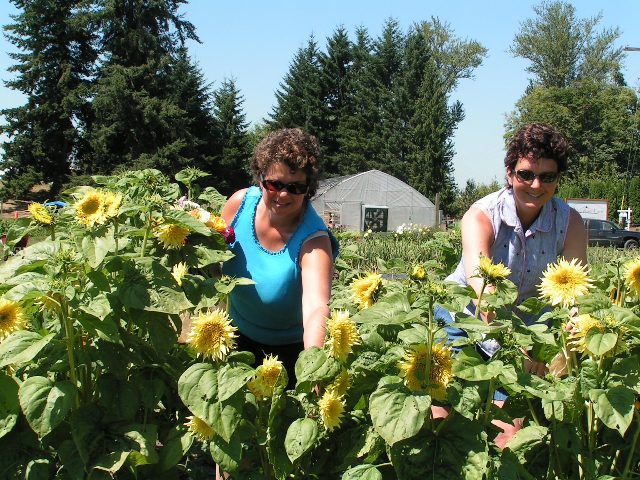 Members enjoy picking a bouquet of flowers and some fresh herbs and greens to take home along with their fruits and vegetables for free.